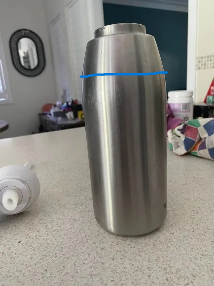 me filling it up, as you can see all the water i drink is put through two filters, it goes from the tap into the brita water jug which is placed into the fridge, its filtered there, the importance of filtered water is higher then what you would think. it helps to keep your taste buds from getting disturbed by bacteria and is a refreshment and mouth cleanser, ill now show below in photos how i make my water. In the first photo you can see a line on the drink bottle, i normally fill up my water to that line, Then add a max of 5 cubes and minimum of 2. today i went with 3. Then you close the bottle and have a refreshing water.